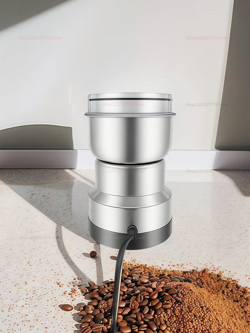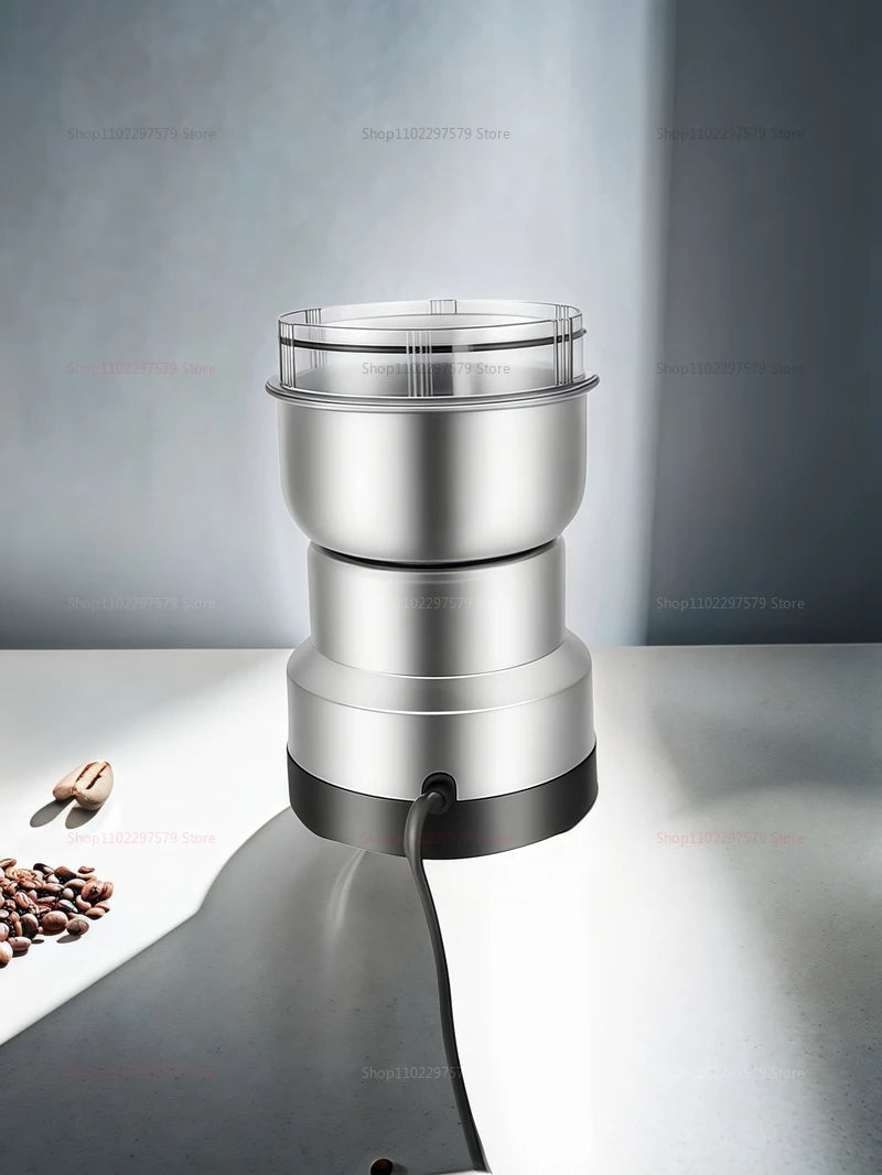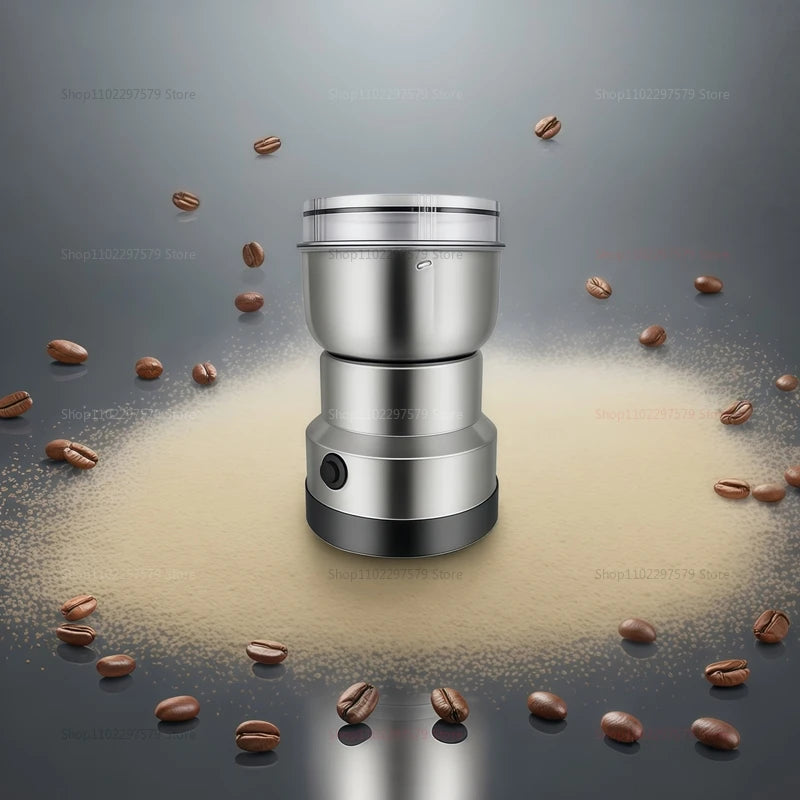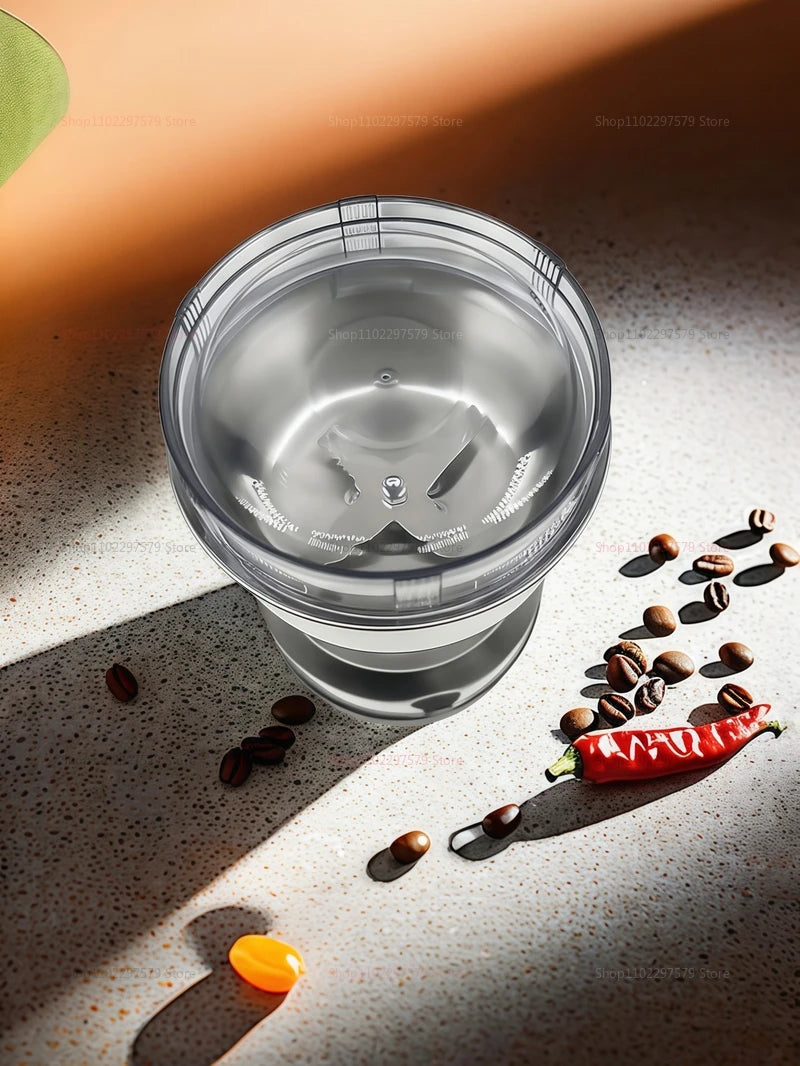 Mini moedor versátil com 4 lâminas, ideal para café, arroz, ervas, sementes e especiarias. Compacto e potente, garante moagem fácil e eficiente de diversos ingredientes secos.